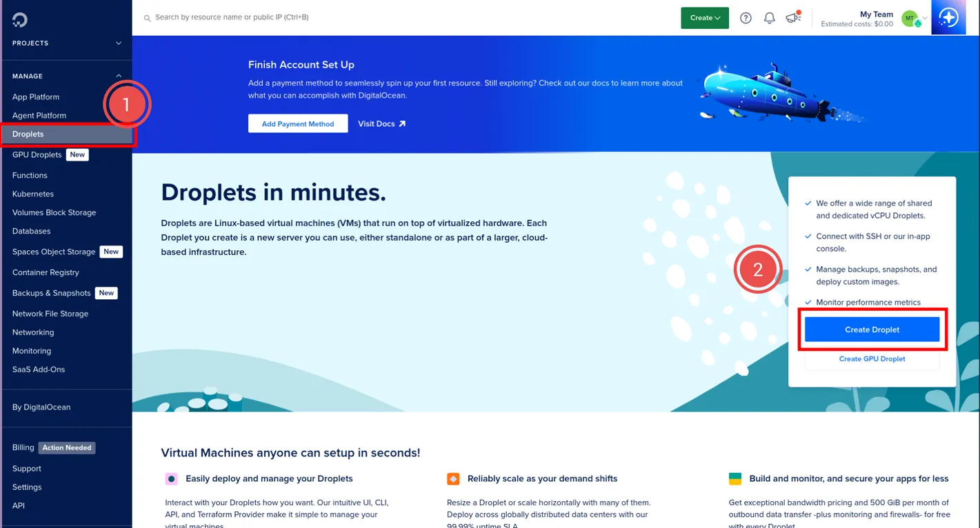 Digital Ocean offers additional storage and automated backup plans if you feel that's necessary. This guide will not use them.