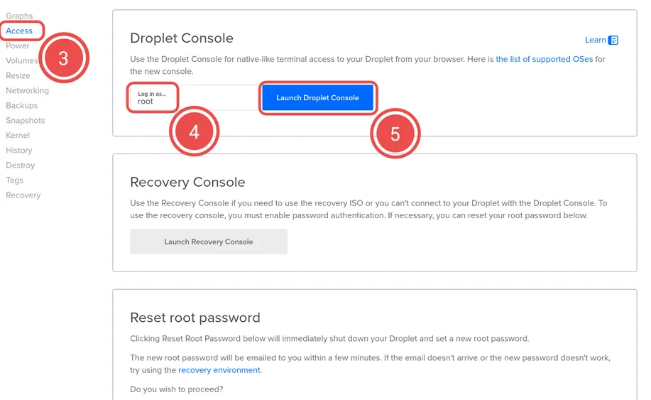 - Log in to Digital Ocean, and reconnect to the VPS as before.