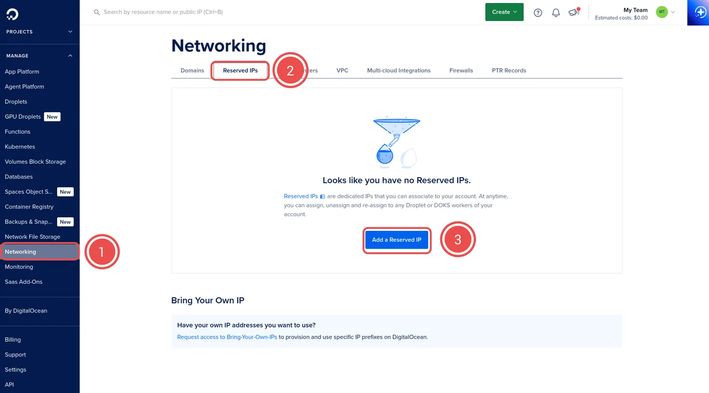 - Click "Add a reserved IP to this Droplet" to finalize.