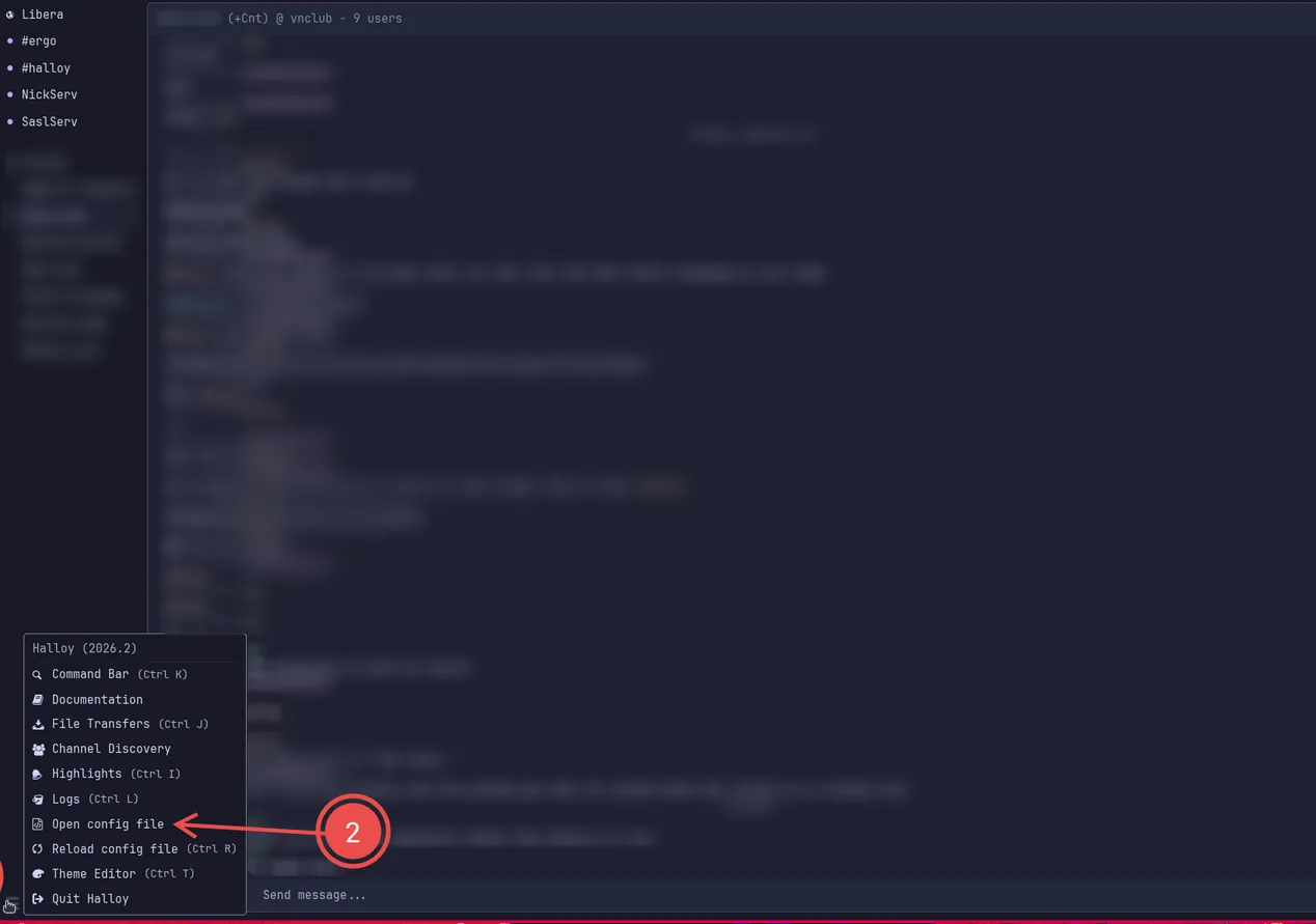 Edit 5. Delete the#at the start of the line, and at the start of the line above. Save, close the file, and restart Halloy.