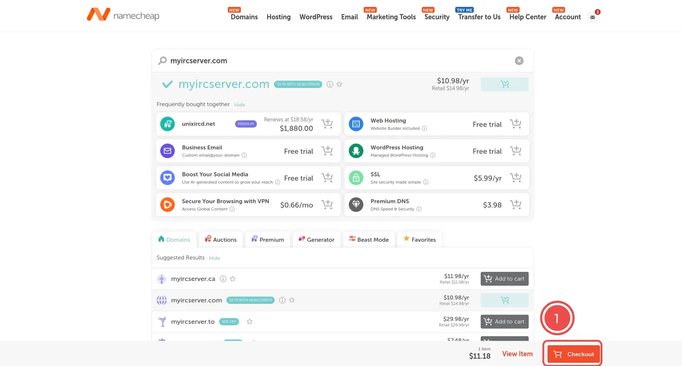 Again, there are an absurd number of domain name providers on the market. They all have their pros and cons. This guide will be using Namecheap to purchase a domain and redirect it to an IRC server.