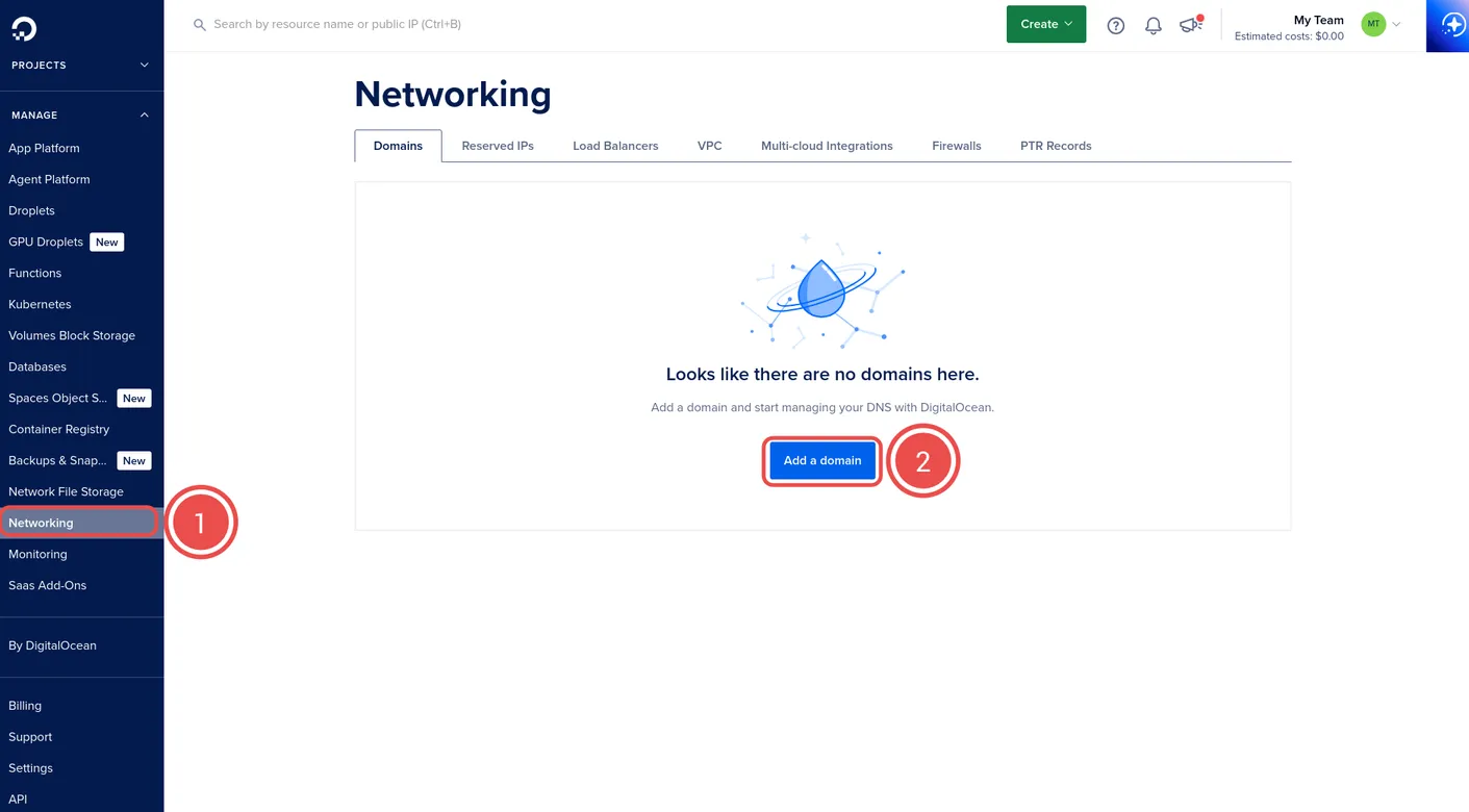 - Log back in to Digital Ocean. Use the bar on the left to open the "Networking" page.
