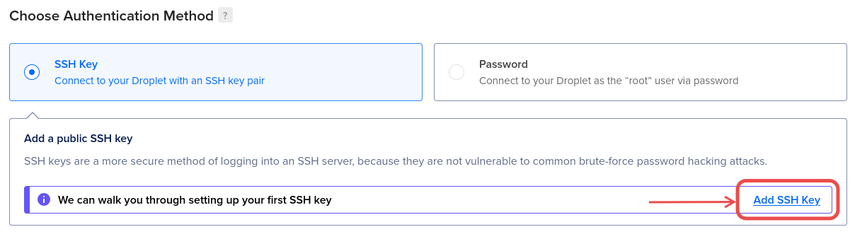 Pick the SSH Key option, instead of a password and click the "Add SSH Key" link. Leave the resulting popup open. This guide will use OpenSSH to generate a key pair, separated by Operating System (OS).