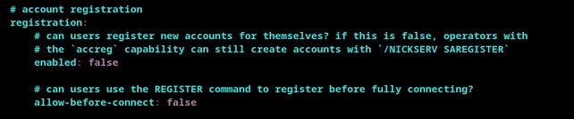 This will create an account named username with the password password. Replace those two fields as you see fit. This can only be done by those with account creation privileges in OPER mode. Accounts created this way can then change their password after logging in using the following command.